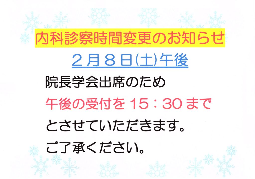 R7 2月8日(土)午後 内科診察時間変更のお知らせ