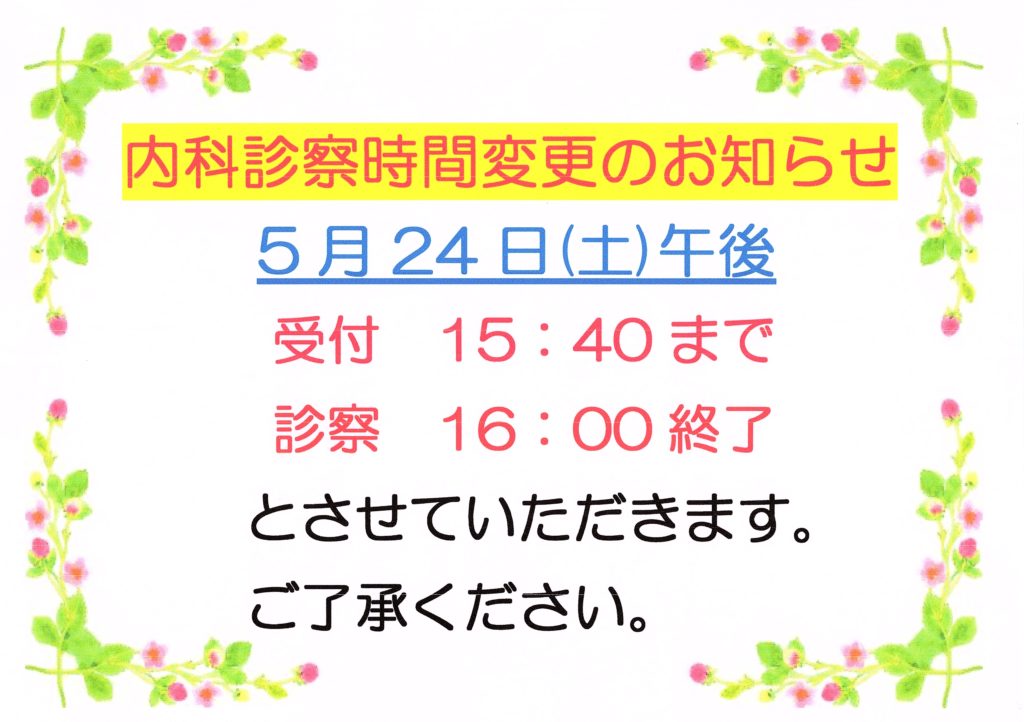 R7 5月24日(土)内科診察時間変更のお知らせ
